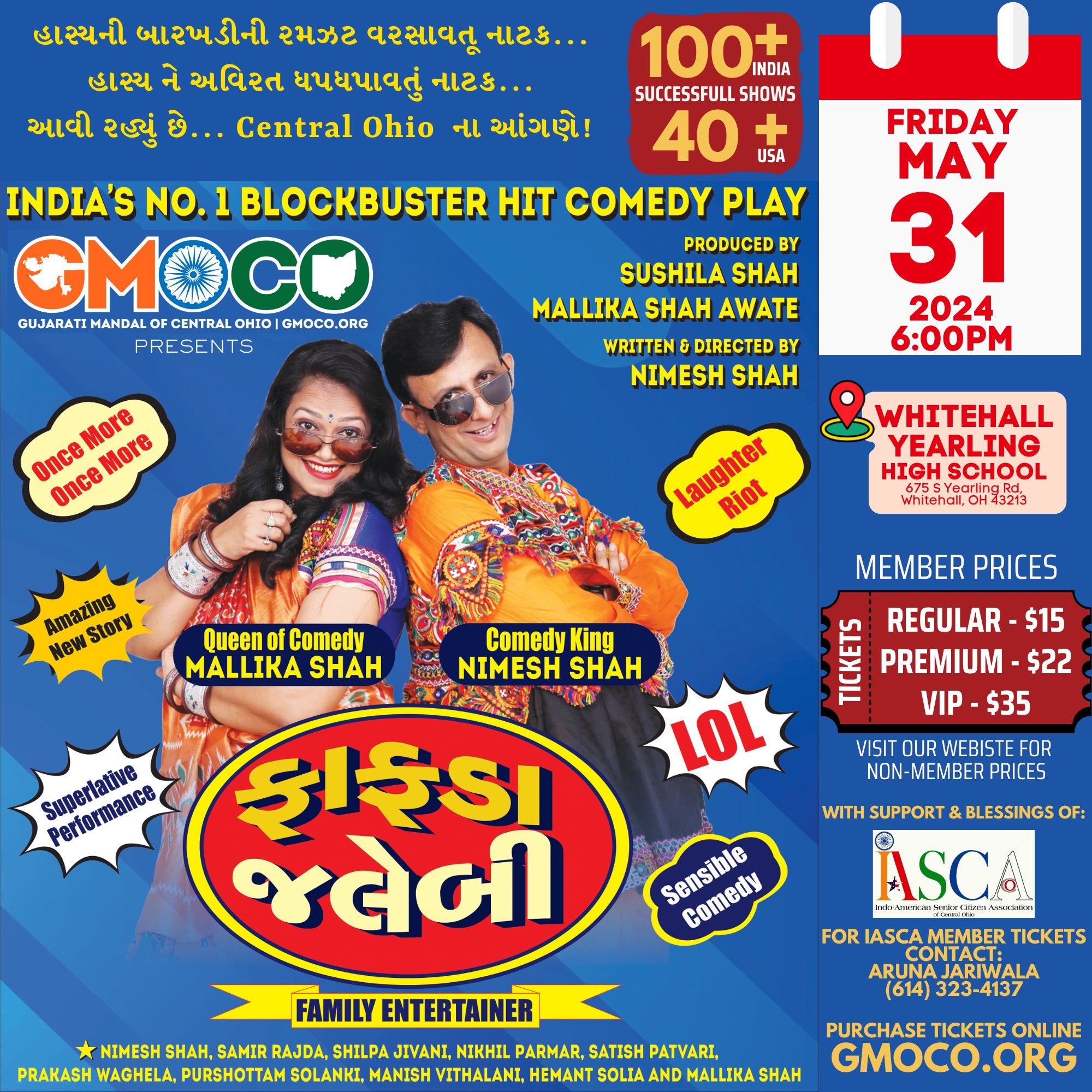 GMOCO is bringing a blockbuster comedy play FAFDA JALEBI to Central Ohio. We are excited to invite you all to join us for this entertaining event. This Gujarati Natak is a perfect opportunity for friends and families to come together and enjoy an evening full of laughter, emotions, and humor. You do not want to miss this unique experience!