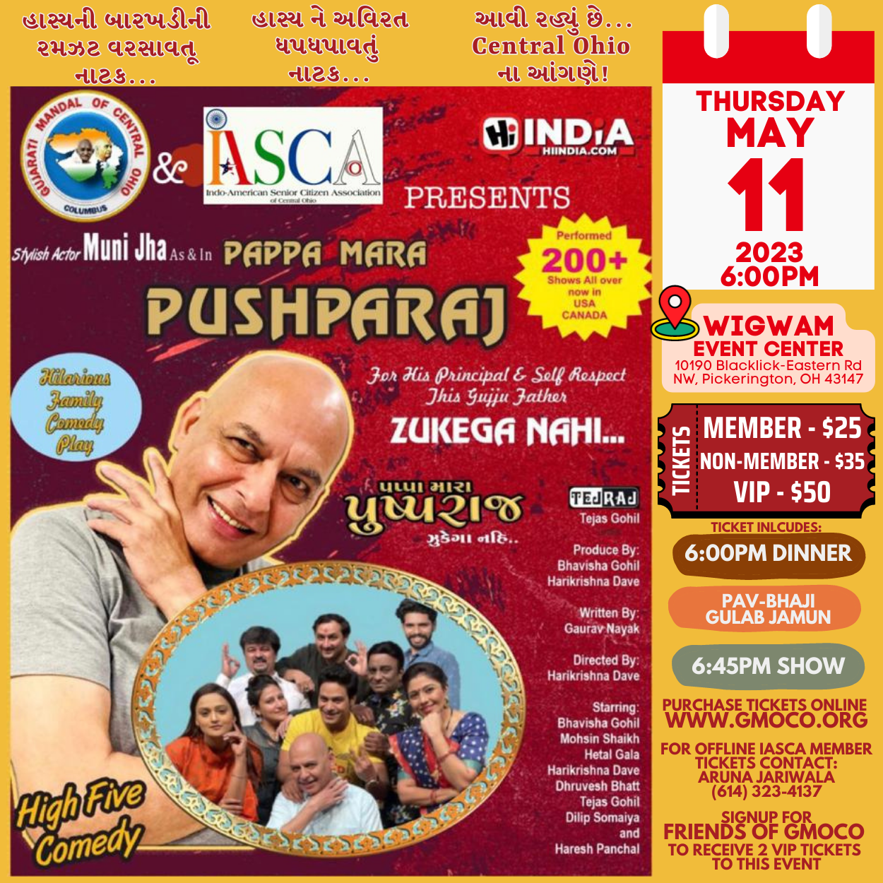 Tickets are now available for PAPPA MARA PUSHPARAJ on Thursday, May 11. A delicious meal will be served before the drama. GMOCO & IASCA teams are working tirelessly to create an unforgettable event for you all.
