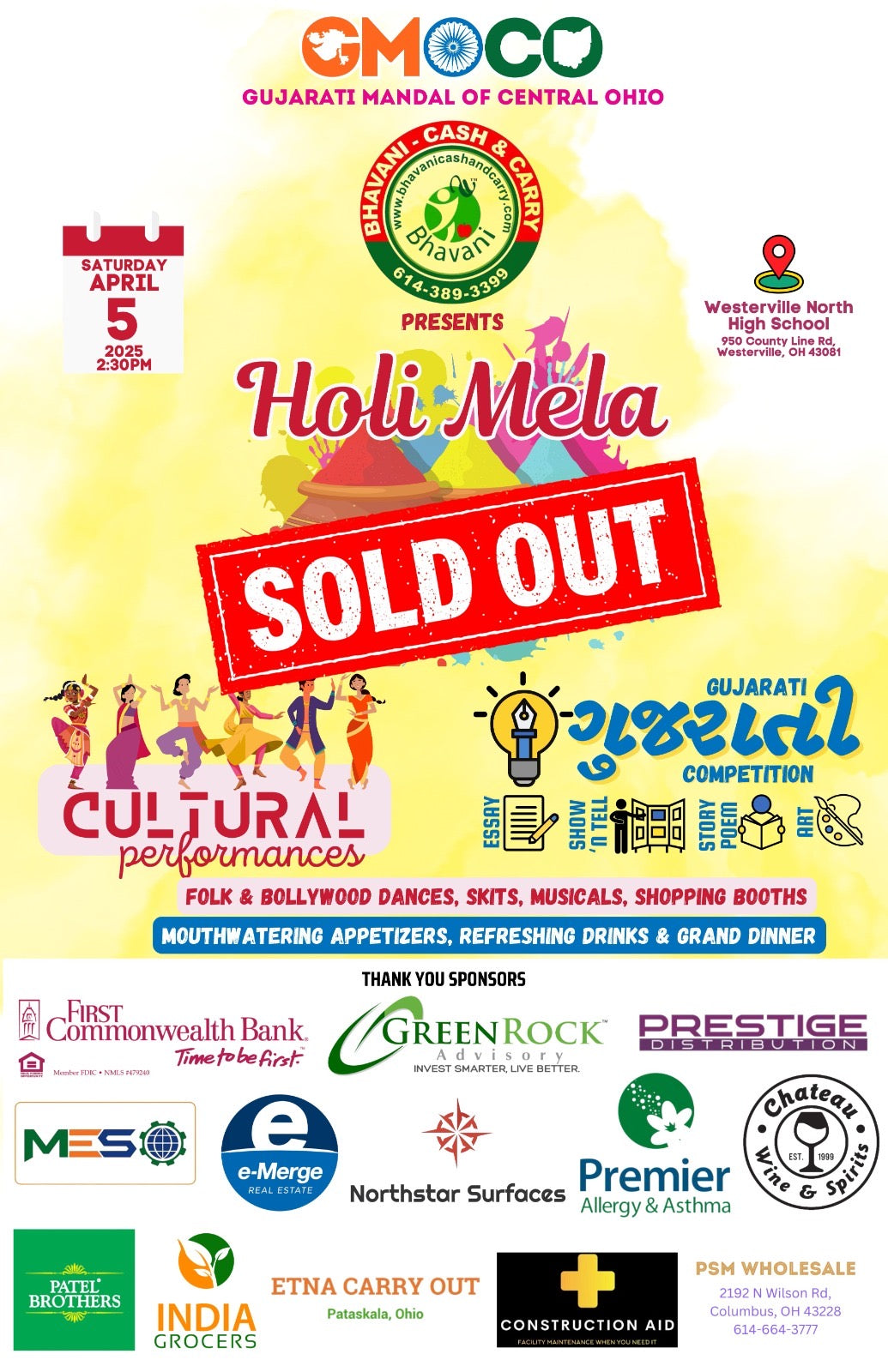 Holi Mela - 2025 sponsored by Bhavani Cash and Carry , MES & Chateau Wine & Spirits.